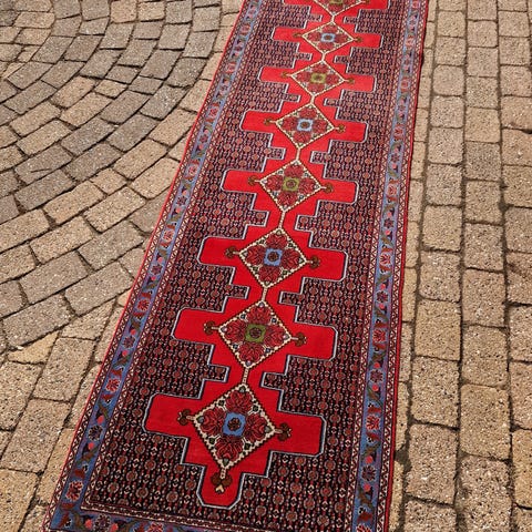 Leder du efter en kvalitetsløber til gangen? Jeg sælger denne lange, håndknyttede løber i et flot Saruk-design med de klassiske ottekantede motiver.