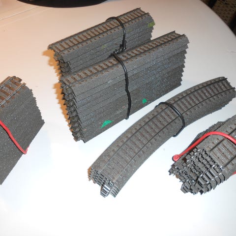 Mærklin M skinner sælges i pakning med 10 stk. for 15 kr.