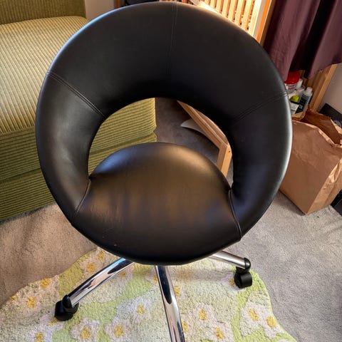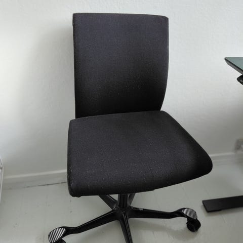Jeg sælger denne sorte kontorstol, som er i pæn og velholdt stand. Stolen har et enkelt og stilrent design, god siddekomfort og passer perfekt til hjemmekontoret eller skrivebordet.