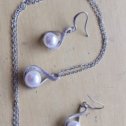 Halskæder og en ørering, har været min datter, men nu skal de videre. Jeg kender ikke materialet