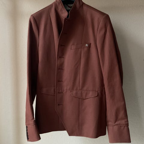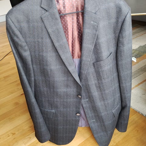 Caruso herreblazerjakke. Str. 54. Blå og grønternet. 71% uld, 15% silke, 14% linen.