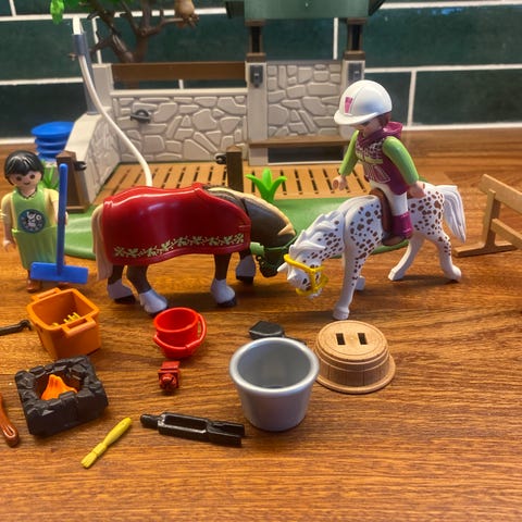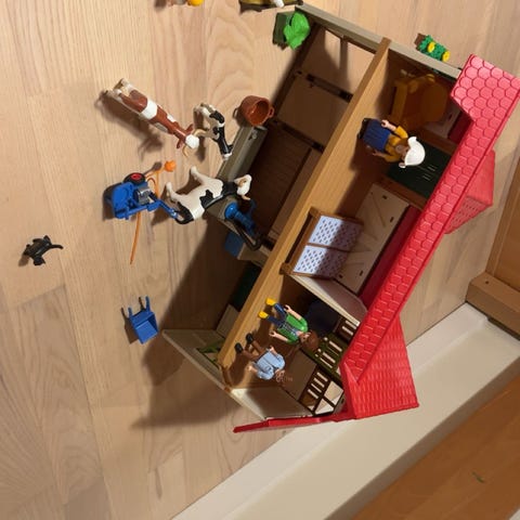 Playmobil bondegård, Noas ark legesæt med dyr og figurer. Derudover mange mindre sæt med flere skibe, traktor, fly, skraldebil, safaribil, safaribus og træer, dyr og mennsker.