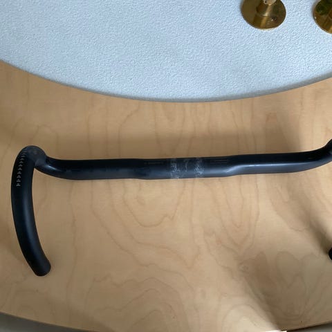 Scorpo X Race aero styr i aluminium, 44 cm bredt, med integreret frempind (120 mm) og Garmin computerholder (Output).