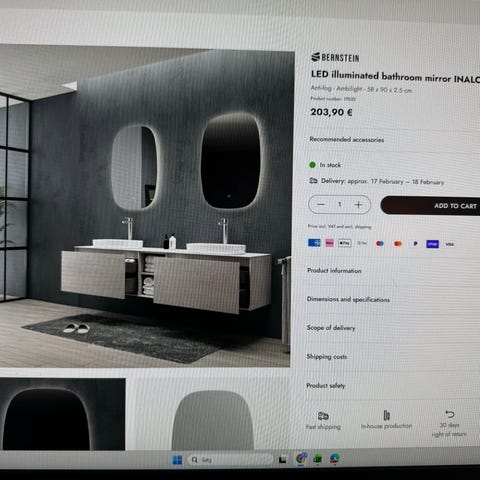 2 stk Loevschall Godhavn spejl med LED belysning -120 x 85 cm Rektangulært spejl til badeværelse med integreret lodret lys i begge sider. 500kr pr stk. 800kr for begge 2. Som nye med beslag og kabler.