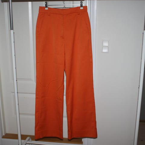 Str. XS Bukser fra Second Female med lynlås i siden og 16 cm slids nederst og midt for på benene. Fremstår som nye.