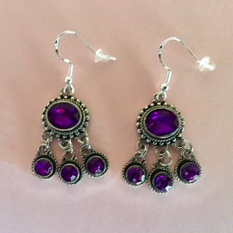 Elegante ÆGTE SØLV øreringe med et vedhæng med tre lyslilla facetterede sten. Vedhænget er 1x3 cm og øreringene er fint udført. De er helt nye og ubrugt