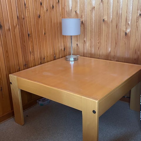 Jeg sælger dette hjørne/sofabord som ikke skal bruges længere. Det købt 13/08-2025 så stadig forholdsvis nyt. Der har stået et mini køleskab på det og eller ikke brugt til andet.