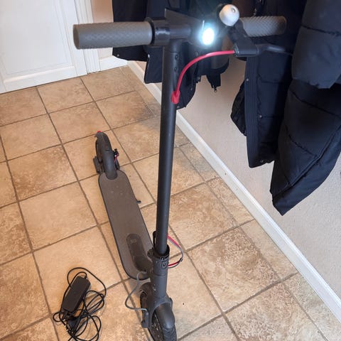 Voksen el-løbehjul i sort. Løbehjulet har digitalt display og app styret på styret med visning af hastighed og batteriniveau. Kan klare 100kg Udstyret med for- og baglys samt bageste bremselys. E-løbehjulet har fast trædeflade og håndtag med bremsegreb og ringeklokke. Velegnet til kørsel på korte og mellemlange strækninger i bymiljø og på jævne underlag.