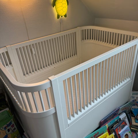 Vi sælger den klassiske Sebra baby & jr. seng i farven hvid. Vores søn har sovet i den 3 gange. Den står bare til pynt, Alt medfølger. Lagen, tisselagen og sengerand fra Tiny Republic. Materialer: Bøgetræ Birketræ HDF