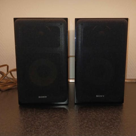 Sony højttaler i sort farve. Enheden er en fritstående højttaler med betjeningsknapper på toppen og bærehåndtag integreret i designet. På bagsiden er der tilslutninger til lydindgang via analoge stik. Højttaleren er egnet til brug i hjemmet eller til mindre sammenkomster, hvor der er behov for en enkelt, større højttaler.