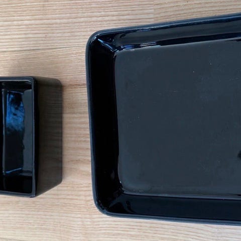 Rektangulært fad porcelæn mønstret hvid sort