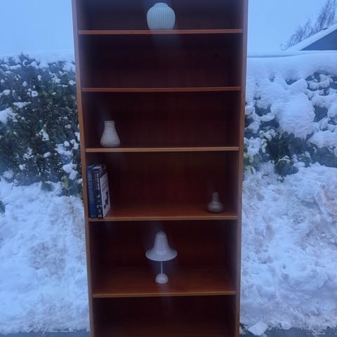 Super flot reol i eg med skab forneden, reolen er med justerbare hylder. Flot svensk design fra Karl Andersson og søner, reolen er med mærke derfra. Reolen er i god stand med aldersbetingede brugsspor. Reolen måler i højden 217, bredde 80 og dybde 33