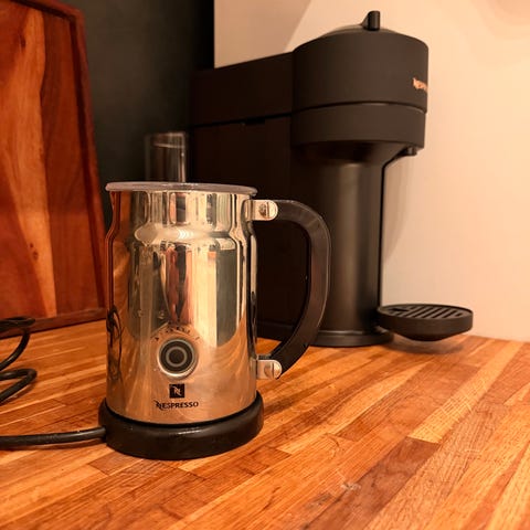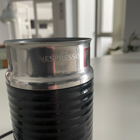 Nespresso Aeroccino 3 mælkeskummer i sort. Elektrisk mælkeskummer med base og låg, egnet til både varm og kold mælkeskum samt opvarmning af mælk uden skum. Cylindrisk beholder med non-stick inderside og aftagelig ledning via basen. Kan bruges til tilberedning af mælkeskum til kaffe- og espressodrikke som cappuccino og latte.