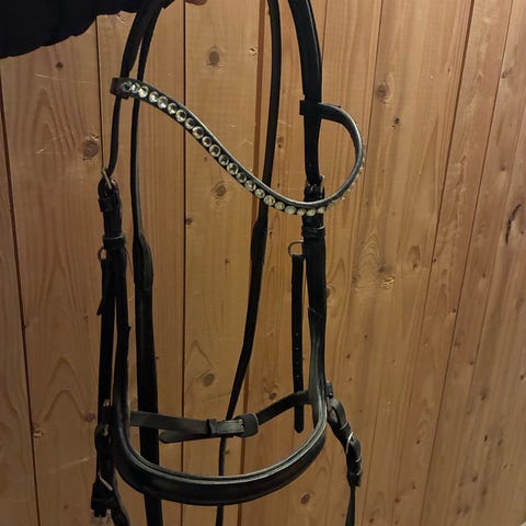 Bidløs Trense til islænder/ pony i sort læder. Udstyret med næsebånd, justerbare remme og metalringe til fastgørelse af tøjler.