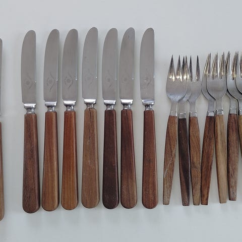 9 gafler og 4 spiseskeer. Alm. brugsspor.