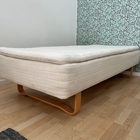 Hvidt Stel og topmadras medfølger.