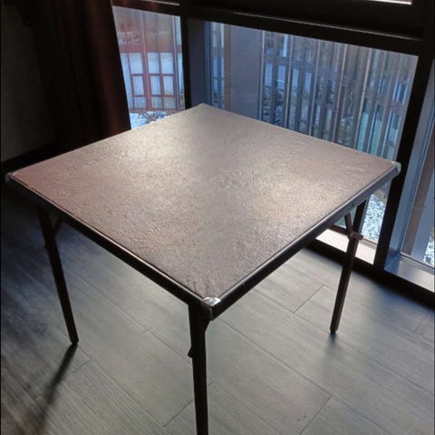 5 små runde klapborde til salg. Det ene bord mangler en skrue, men ellers virker alt som det skal. 100 kr stk
