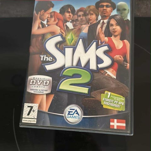 EA Games The Sims 2 pc spil. Fysisk udgave på dvd-rom i standard plastcover. Spillet er til pc og er mærket med aldersgrænse 7+. Dansk udgave med dansk flag angivet på forsiden af coveret. Indeholder installationsdisk og trykt omslag med billeder og korte beskrivelser af spillets indhold på bagsiden.