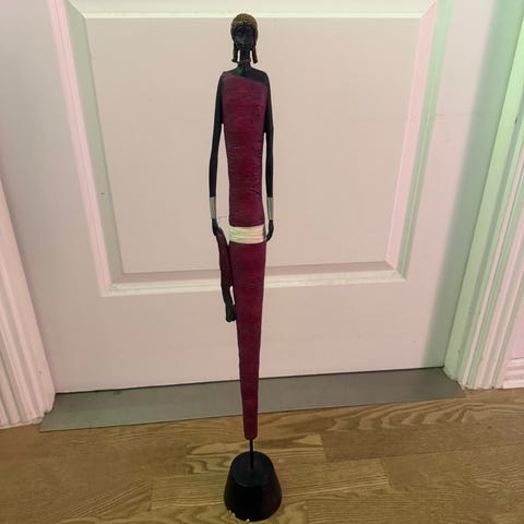 Asiatisk udskåret figur i resin med to personer og kurve. 20 cm høj på fod