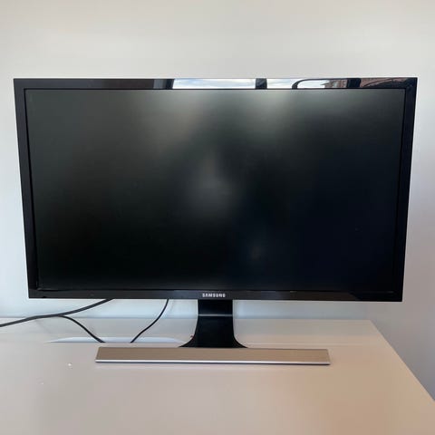 Samsung skærm på 28 tommer i sort. Skærmen står på fod og tilsluttes med kabel. Velegnet som computerskærm til kontorbrug, studier eller generel hjemmebrug, hvor der er behov for en større skærmflade.