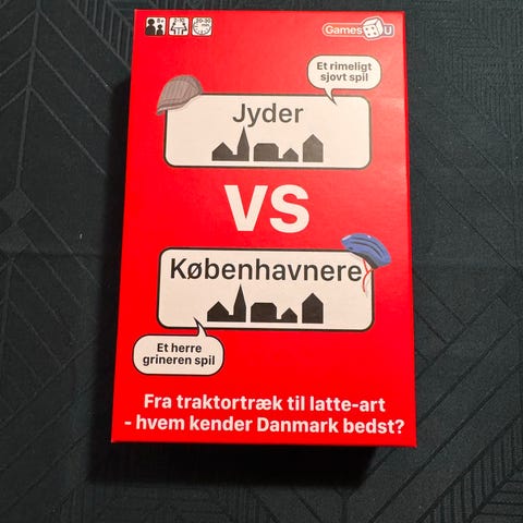 Jyder vs Københavnere spil. Spillet er et quiz- og opgavespil, hvor deltagerne dyster i viden og fordomme om jyder og københavnere. Indholdet består af kort med spørgsmål, udfordringer og udsagn, som spillerne skal tage stilling til. Spillet er egnet til flere spillere og kan bruges som selskabsspil til f.eks. familieaftener eller sammenkomster med venner.