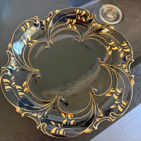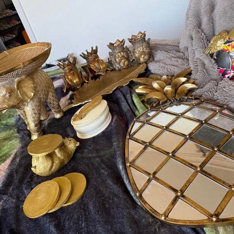• Dekorativ glaspistol lakeret i guld (købt i “ Vores Verden”, Blåvand)
