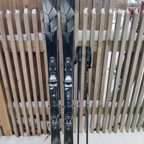Line alpinski med bindinger i blå nuancer. Skiene har bred spids og tail samt relativt bred midte, egnet til alpint skiløb. Monteret med sorte bindinger. Velegnet til brug på pister og i varieret terræn afhængigt af længde og skiløberens niveau.