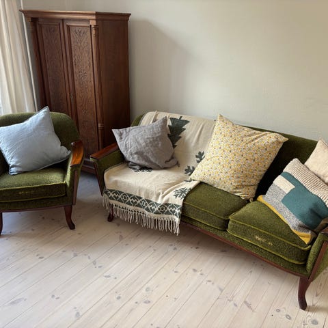 EKENÄSET sofaen giver rummet en stilfuld retro-atmosfære, der er inspireret af 50'ernes skandinaviske design.