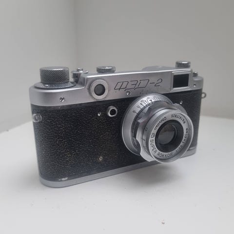 Retro kamera produceret i USSR. Fungerer som det skal. Ikonisk kamera, der også fremstår dekorativt.