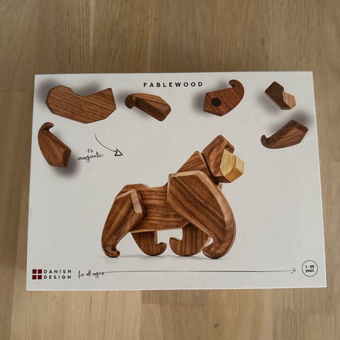 Fablewood træand puslespilsfigur i naturfarvet træ. Figuren består af flere udskårne trædele, der samles til en and. Leveres i æske med skumindlæg, som holder delene på plads. Velegnet som dekorationsgenstand eller som enkel puslespilsaktivitet for større børn og voksne.