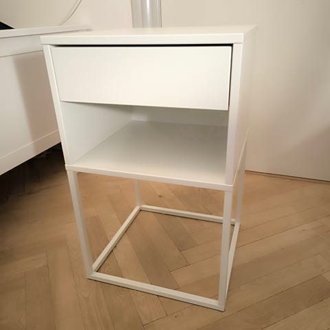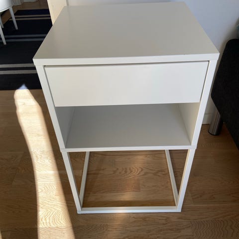 Sælger et VIKHAMMER natbord fra IKEA i sort.