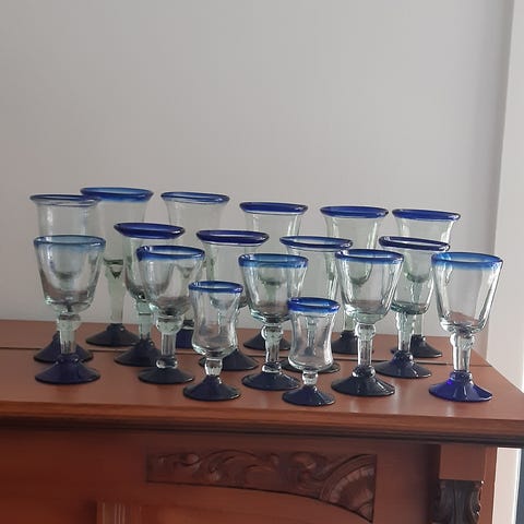 3 mindre glas blæst med bagepulverteknik, der gør at der kommer masser af små bobler i glasset. Dette mærkes også i overfladestrukturen, der får sådan en slags ru glathed over sig. Det højeste er 14 cm og det mindste 9 cm højt. Samlet pris