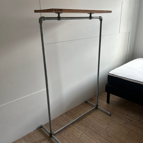 Dansk design tøjstativ lavet af vandrør med en skohylde i røget eg. Sælges grundet flytning.