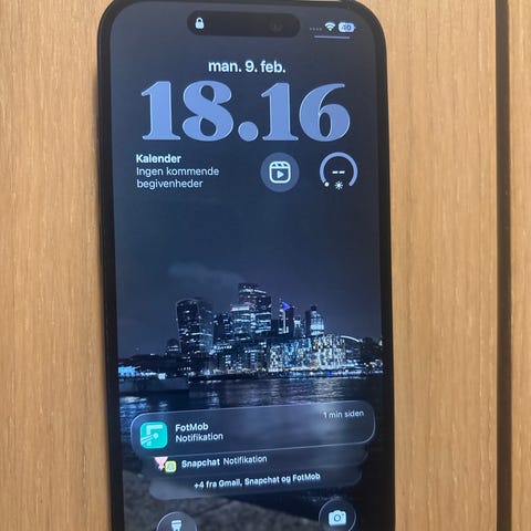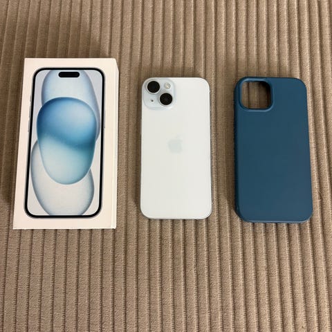 IPhone 15 smartphone med 256 GB lagerplads.