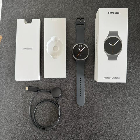 Samsung smartwatch Galaxy Watch8 - ny i ubrudt emballage. Med bluetooth. Størrelse: 44 mm Farve (både ur og rem): Graphite. Prisen er fast. Læs evt. mere her: https://www.samsung.com/dk/watches/galaxy-watch8/buy/