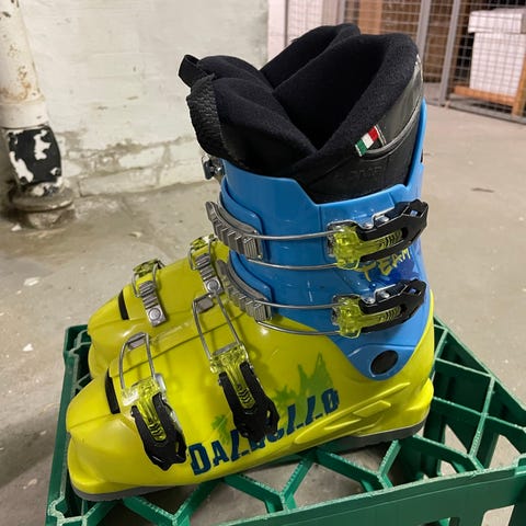 Dalbello Moro skistøvler i sort med gule detaljer. Skistøvlerne har flere justerbare spænder og powerstrap øverst, som giver mulighed for individuel tilpasning omkring fod og underben.