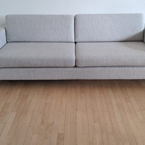 Grå/brun 3 pers sofa sælges. Ben er børster stål og der er dun i puder og hynder for ekstra komfort. Der er søvngaranti på langs i denne sofa. Husk at sætte alarm. Betrækket på på puder og sæder kan vaskes.