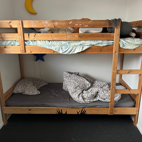 Sengen er brugt, men i fin stand og fuldt funktionel. Stabil og solid konstruktion – perfekt til børneværelse eller sommerhus.