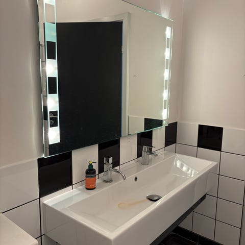 Laufen håndvask med dobbeltarmatur og spejlskab hvid