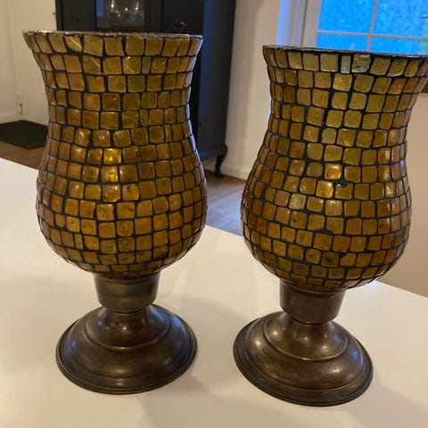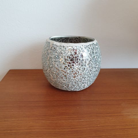 Orientalsk mosaik lysestage i sort og sølvfarvet glas. Smuk lysestage som jeg har købt på en ferie til Tyrkiet. Spreder et virkelig flot og funklende lys.