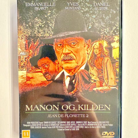 Kilden i Provence – Jean de Florette DVD film. Udgivelse af spillefilmen på DVD i standard plastikcover. Forside og disc viser filmens originale omslagsillustration. Velegnet til afspilning på DVD-afspillere, computere med DVD-drev eller andre kompatible enheder, der understøtter DVD-video.