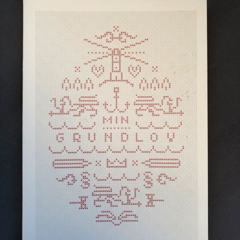 Min grundlov bog med trykt forside i lys farve og grafisk motiv. Indeholder tekst om den danske grundlov. Velegnet som referencebog eller til undervisningsbrug.
