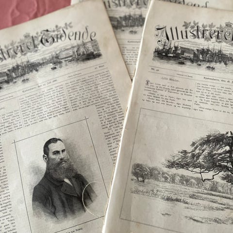 4. Enkeltside i charteque: Fra Københavner-Fornøjelse til Lands-Sport. Tekstrig side. Ukendt blad/ukendt år. 10 kr