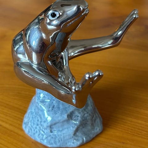 Hejl Denmark Sparebøsse. And med blå øjne sølvfarvet