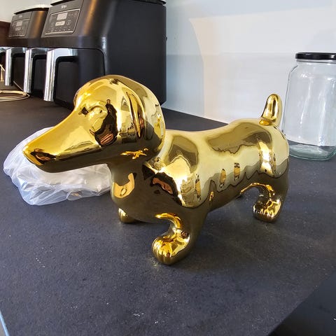 Højest sandsynligt sølvplet. Sparebøssen har møntindkast på ryggen og åbning i bunden med aftagelig prop til tømning. Velegnet som dekorativ genstand eller til opsparing på børneværelset eller i hjemmet.