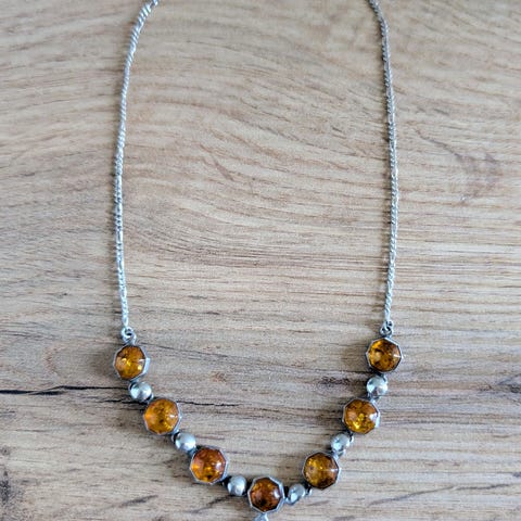 Sølvhalskæde (925) med baltisk rav