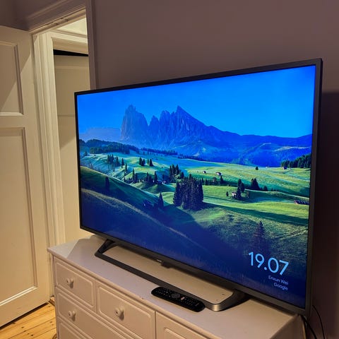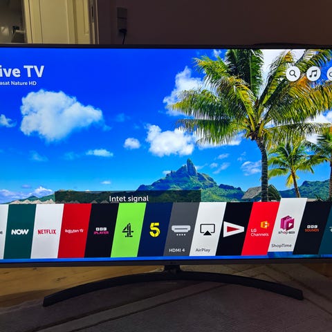 LG fladskærms-tv. Vægmonteret tv med fladt panel og tynd ramme. Egnet til ophæng i stue eller andre rum. Understøtter smart-tv-funktioner via menuerne vist på skærmen.