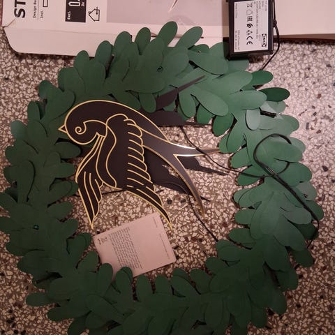 Ikke fra IKEA, men jeg kender ikke mærket. Månelampe i kugleform med fjernbetjening. Lampen har struktur som en planet eller måne og står på en enkel træholder. Den tilsluttes med ledning og kan skifte farve via den medfølgende fjernbetjening. Velegnet som stemnings- eller hyggebelysning ved andre højtider eller som dekorativ belysning i hjemmet.