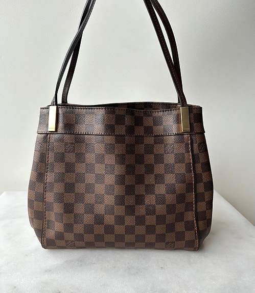 Tasken fremstår meget flot med minimale brugsspor. Læderet er pænt og velholdt. Hardwaren er i flot stand, og der sidder fortsat plastik på nitterne i bunden, hvilket vidner om meget nænsom brug. Indvendigt fremstår tasken ren og velholdt.