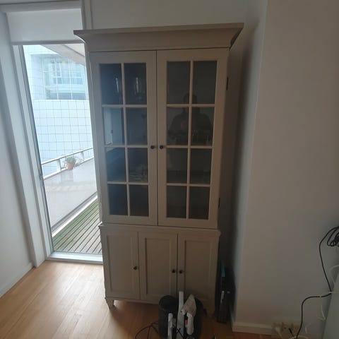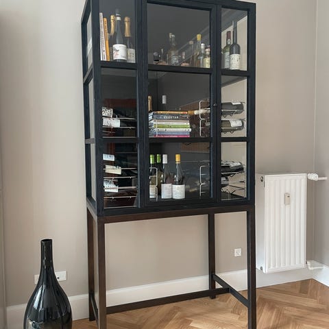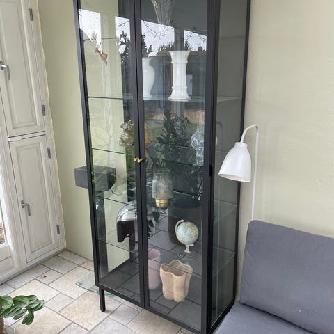 Stilen på vitrineskabet er en smuk kombination af rå metal med et industrielt udtryk, og riflet glas på sider og låger, som giver en antik retro fornemmelse.